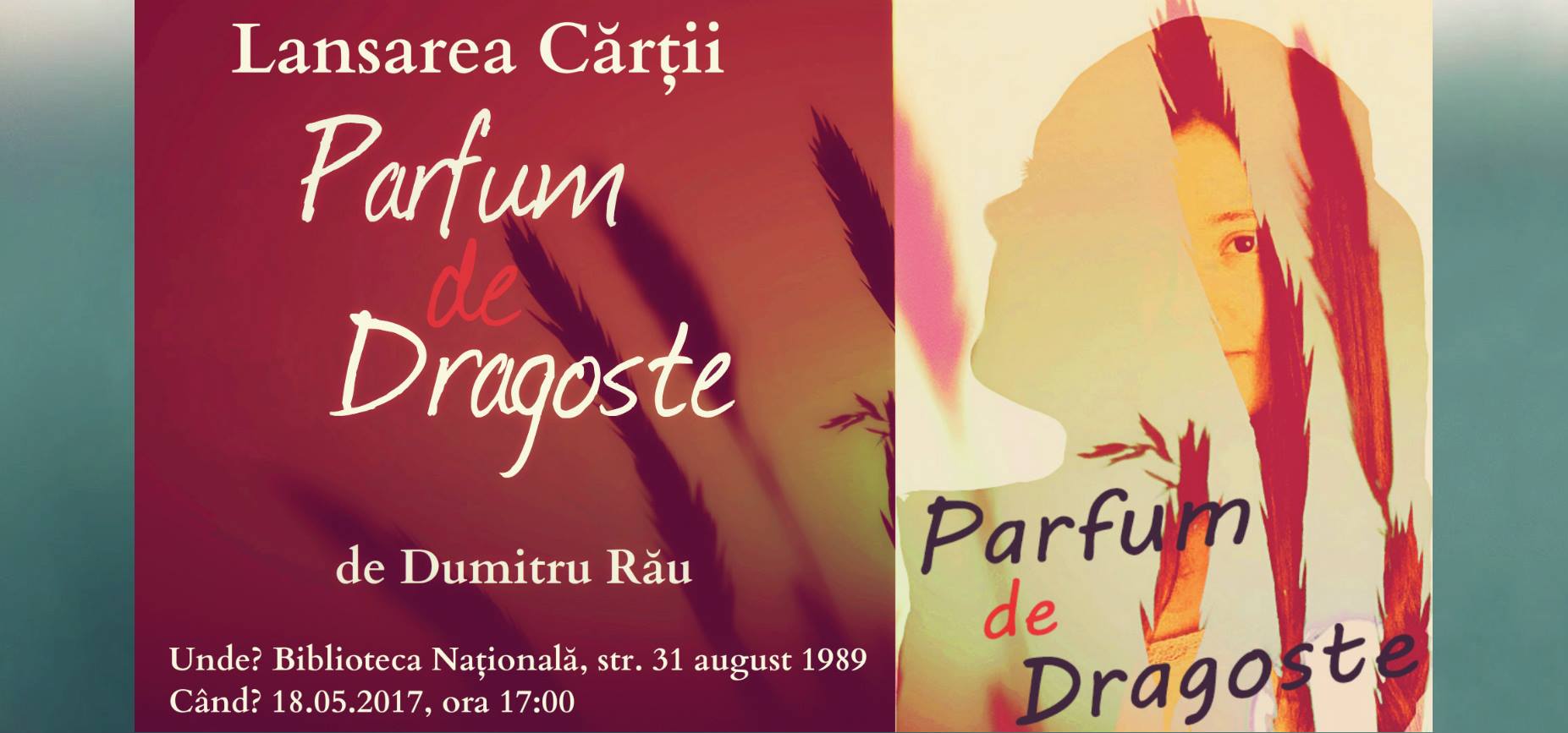 Lansarea cărții „Parfum de Dragoste” va avea loc pe 18 mai, ora 16:45 în incinta Bibliotecii Naționale. Pregătesc o lansare cu multă poezie. Nu va fi ceva extravagant, dar promit că va fi special pentru fiecare cititor.