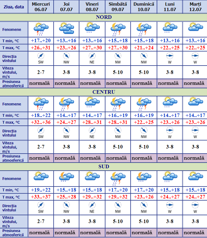 Așadar, meteorologii prognozează ploi cu descărcări electrice la nordul Republicii Moldova. Tempertura aerului va fi de 26-31 grade Celsius.