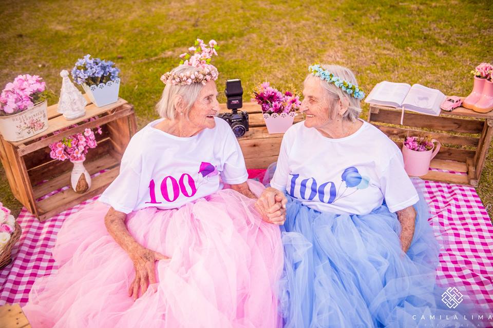Două gemene ajunse la a suta aniversare și-au făcut o ședință foto comună! Imaginile sunt adorabile (FOTO)