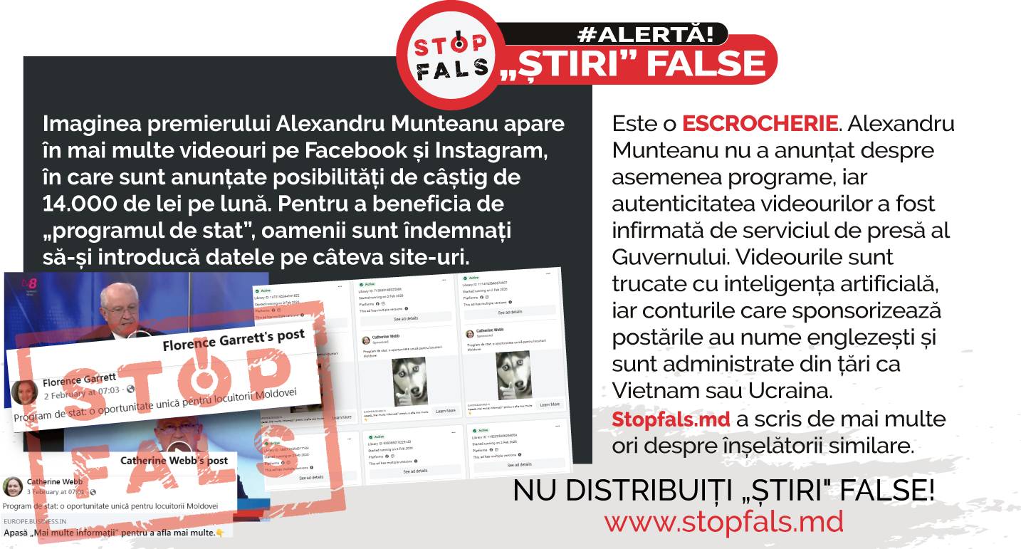 Actualitate Social Escrocherii online cu imaginea premierului Alexandru Munteanu: reclame deepfake promit câștiguri fictive Cristina Botnarevschi 7 februarie 20261 min readCristina Botnarevschi ea.md https://ea.md/wp-content/uploads/2018/03/ea_new-2.png 450 245 7 februarie 20267 februarie 2026 https://ea.md/wp-content/uploads/2026/02/a551265476c284cce72a7b93f87f1d7d.jpg 620 413