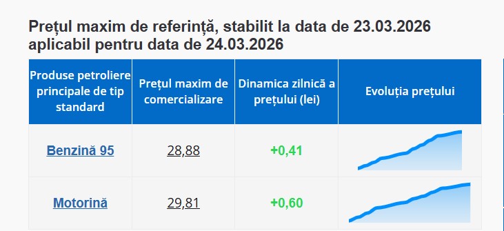 Agenția Națională pentru Reglementare în Energetică (ANRE) a stabilit noile prețuri maxime de comercializare a carburanților, valabile pentru 24 martie 2026, iar acestea indică o nouă scumpire la pompă.