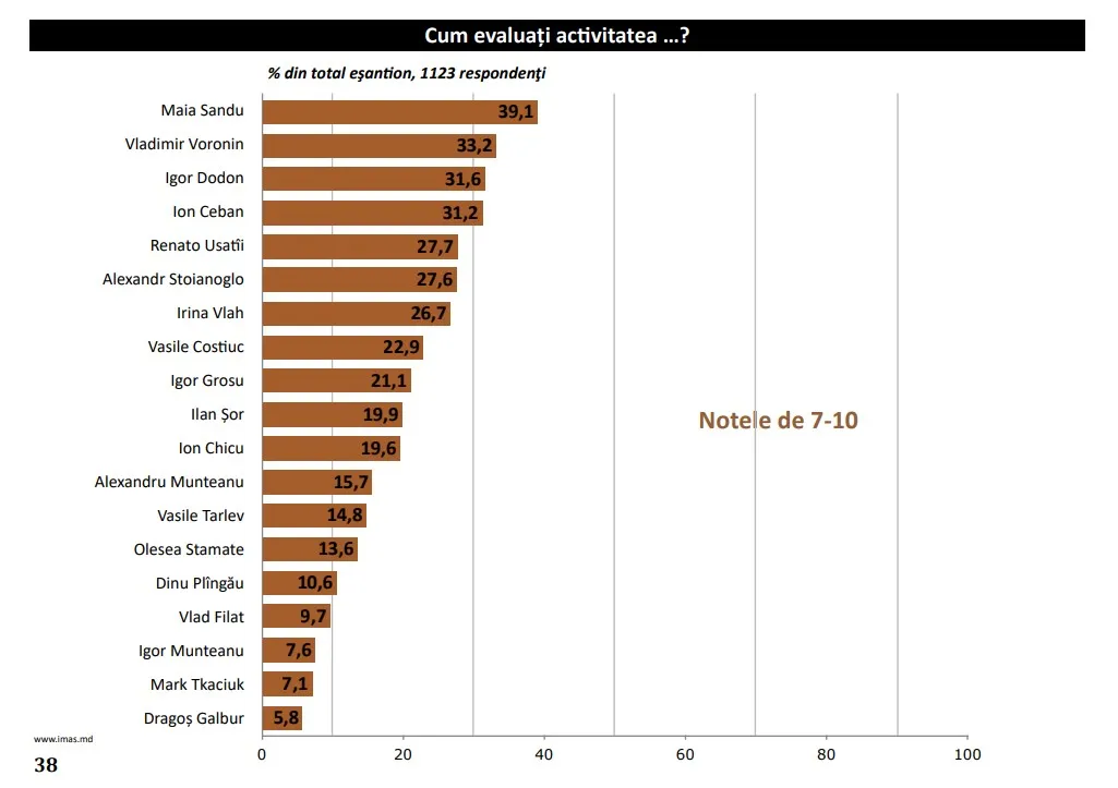 Sondaj: Aproape 40% dintre moldoveni apreciază pozitiv mandatul Maiei Sandu